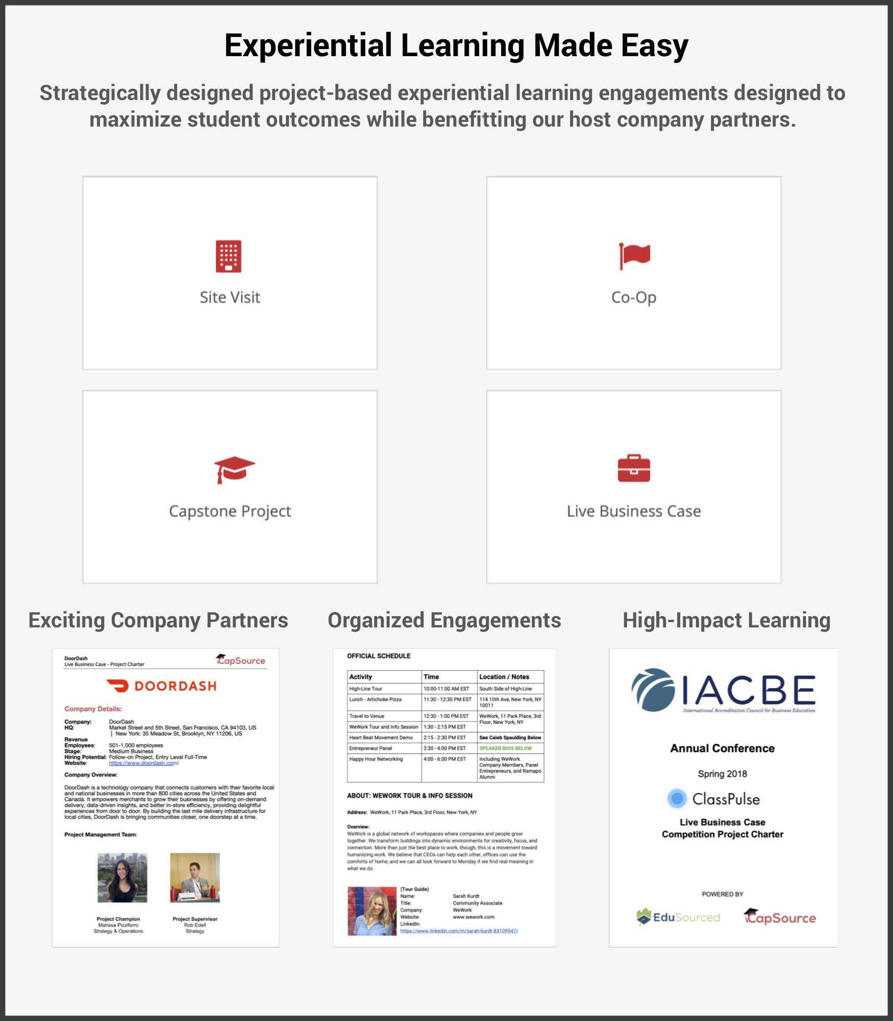CapSource integrates real-world business leaders and their company challenges directly into the education process through research-oriented project-based experiential learning engagements.