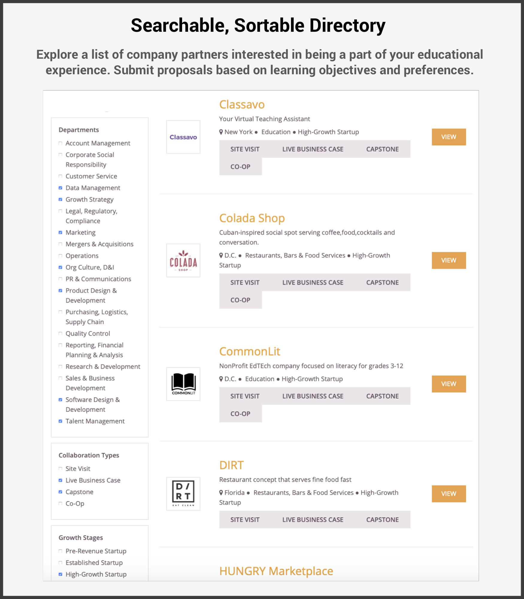 Explore how schools use collaboration requests to connect with companies RIGHT NOW for specific experiential learning initiatives