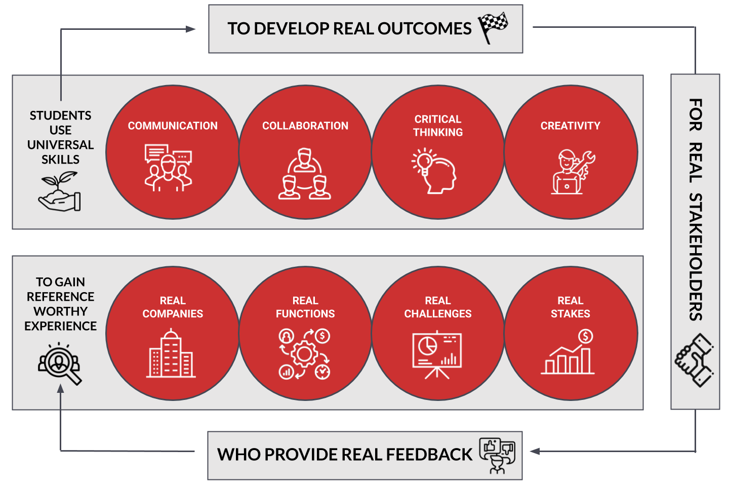 As a result, students gain reference-worthy experience working with real companies, in real business functions, on real challenges that have real stakes.